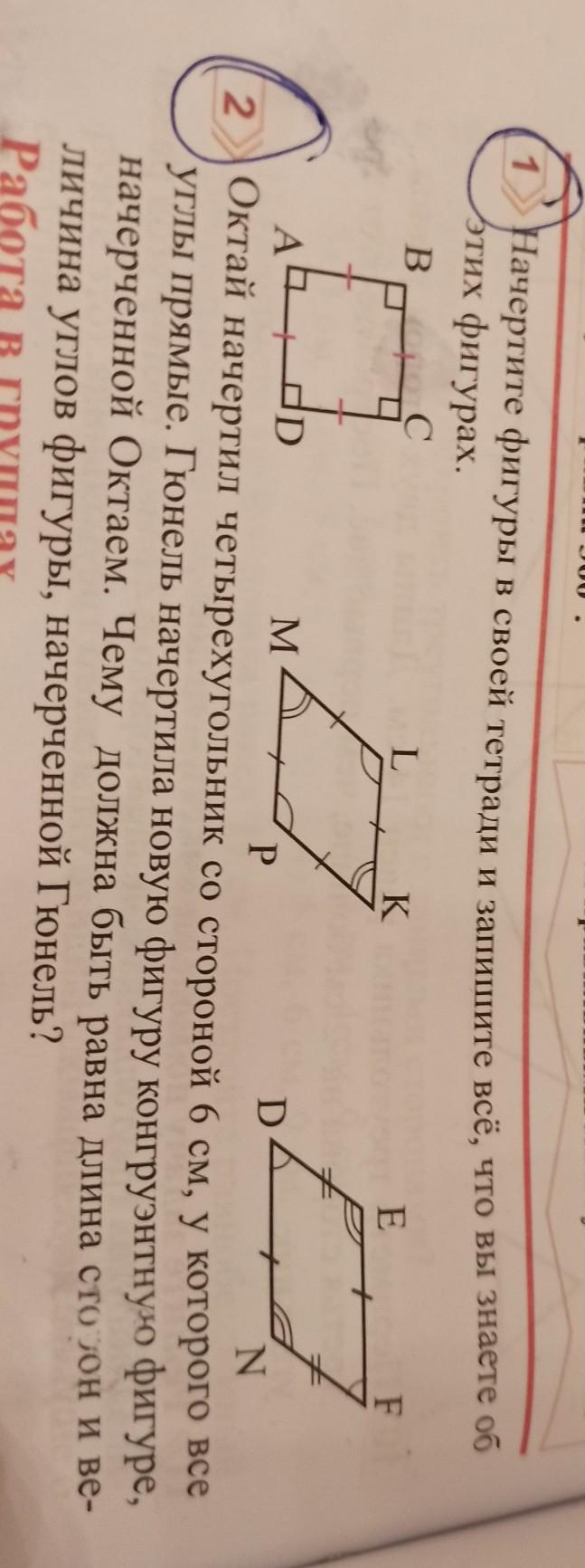 длина сторонф гуры начерченная Гюнель =6 см так как она начертила фигуру конгруэнтной фигуре нарисованной Октаем,и величина углов =90 градусов,так как все углы фигуры(квадрата)равны
