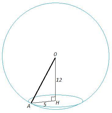 шар пересечен плоскостью на расстоянии 12см от центра найдите радиус шара если радиус сечения равен 5. (рисунок, дано и решение)