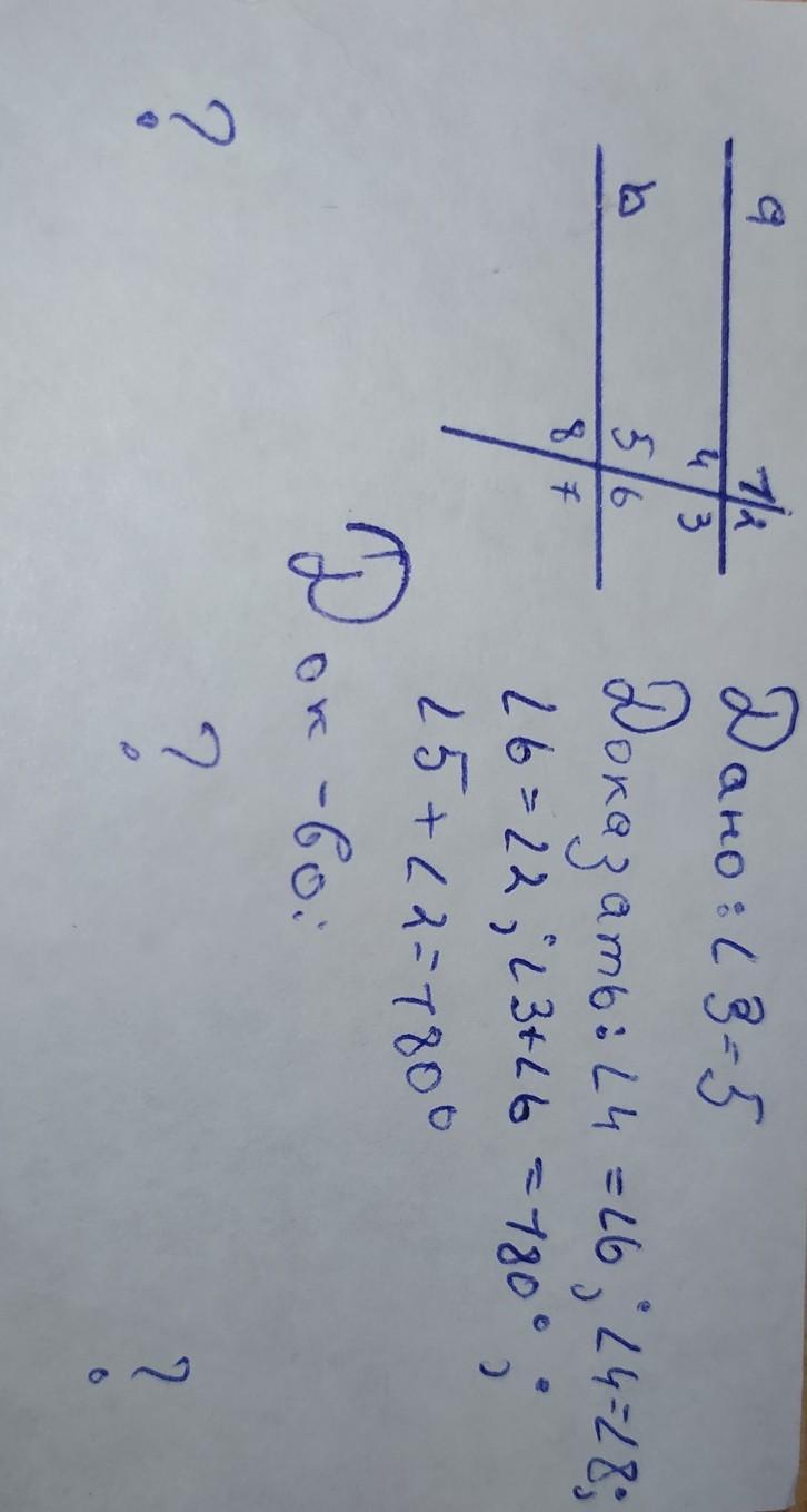 4и6равны как накрест лежащие,4и8каксоответственные,6и2каксоответсвенные,3и6каксмежные,5и2какодносторонние