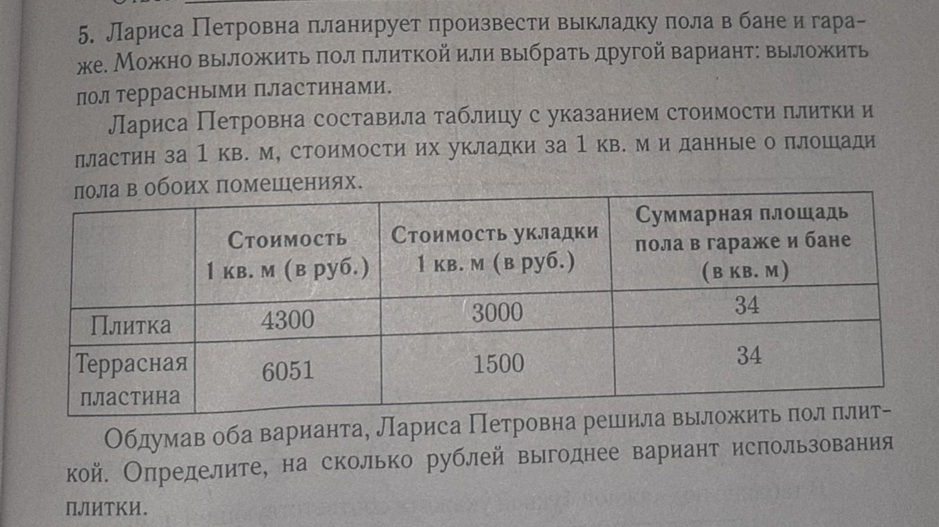 4)34×1500=51000(руб.)-понадобиться на укладку