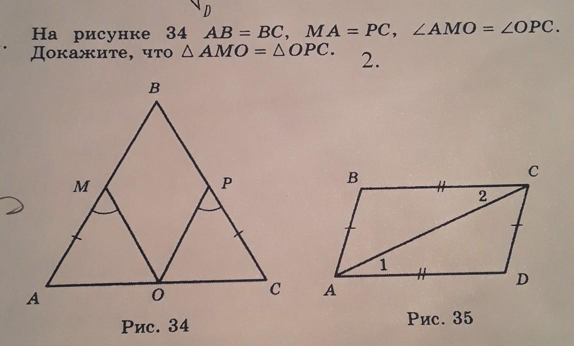 Т. К. У них есть общая сторона AC, Равные стороны AB и BC и равный угол