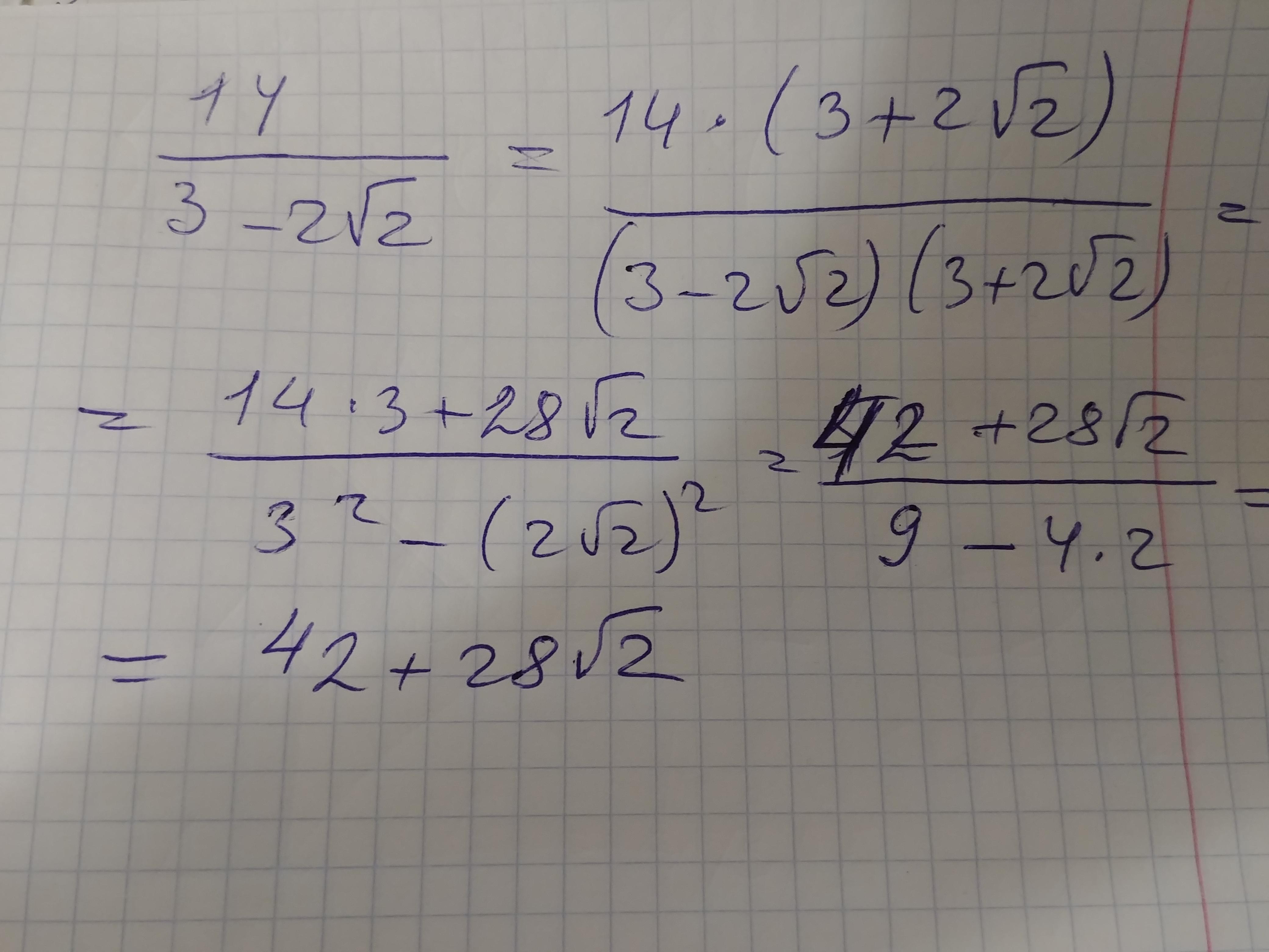 14*(3+2√2)/(3-2√2)*(3+2√2) = (42+28√2)/(3² - (2√2)²) =