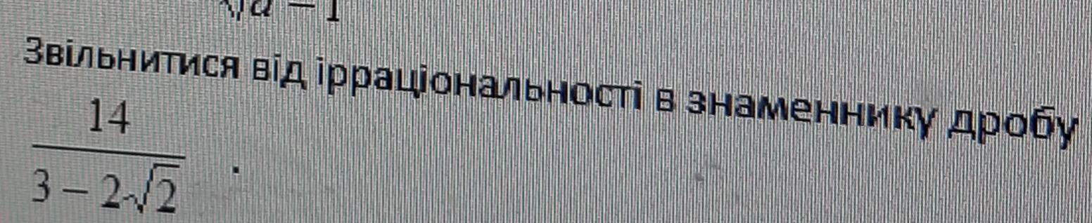 щоб звільнитись від ірраціональності в знаменнику дробу, помножимо і чисельник і знаменник на такий вираз, щоб позбутися кореня, тобто на 3+2√2