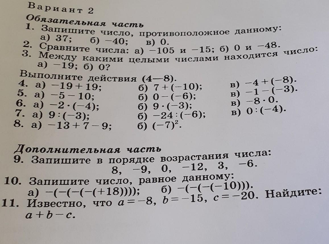 8. а) 13 + 7 - 9 = -15 б) (-7)² = 49