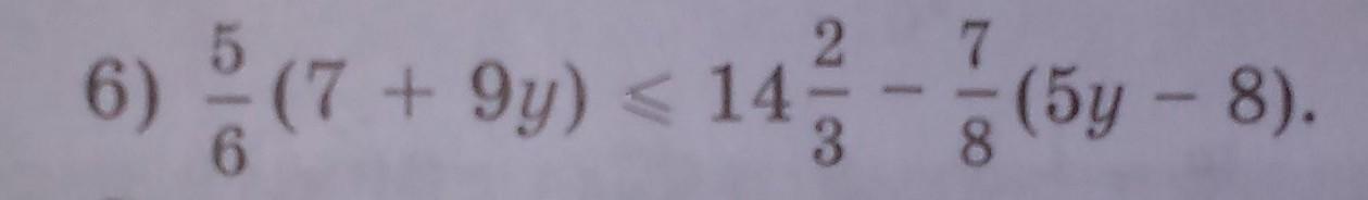 5/6 ·(7+9y)≤14 2/3 -7/8 ·(5y-8)