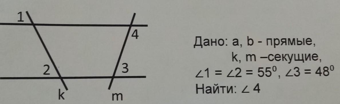 Ответ:угол 4 равен 132 градусам