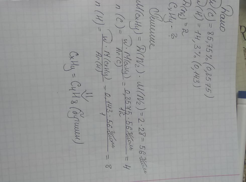 Определите молекулярную формулу углеводорода, если массовая доля углерода равна 85,75, а водорода - 14,3%. Отоносительная плотность этого вещества по азоту примерно равна 2. Спасибо!