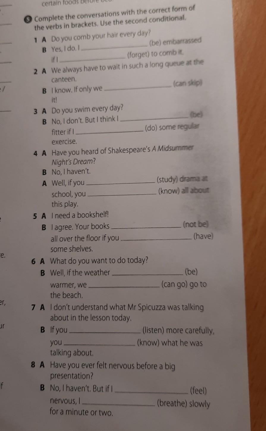 B No, I haven't. But if I FELT nervous, I WOULD BREATHE slowly for a minute or two.