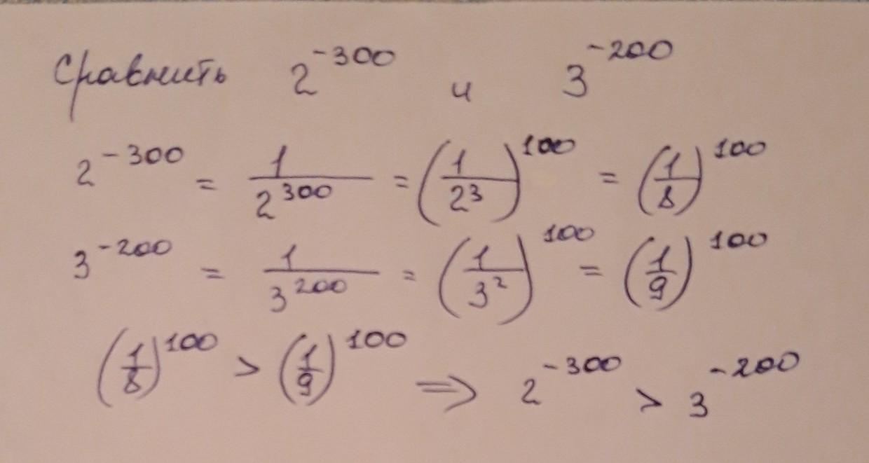 сравнить выражения 2^-300 и 3^-200 степени