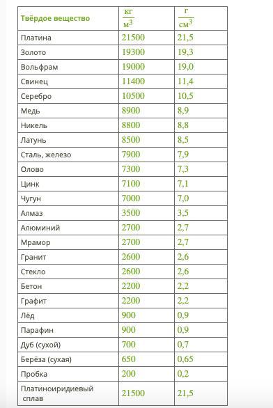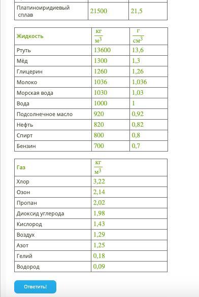 Используя таблицу плотностей веществ, найди массу 1м3 водорода.