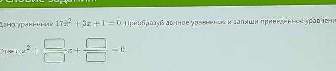 17x^{2}+3x+1=0(/17)\x^{2}+frac{3}{17}x+frac{1}{17}=0