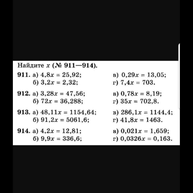 911) а) 5,4 / б) 0,725 / в) 45 / г) 95