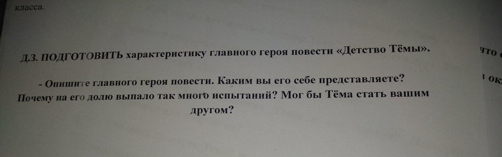 50 Баллов!!!!!! Опишите главного героя повести Детство Темы? каким вы его себе представляете?Почему на его долю выпало так много испытаний? Мог бы Тема стать вашим другом?