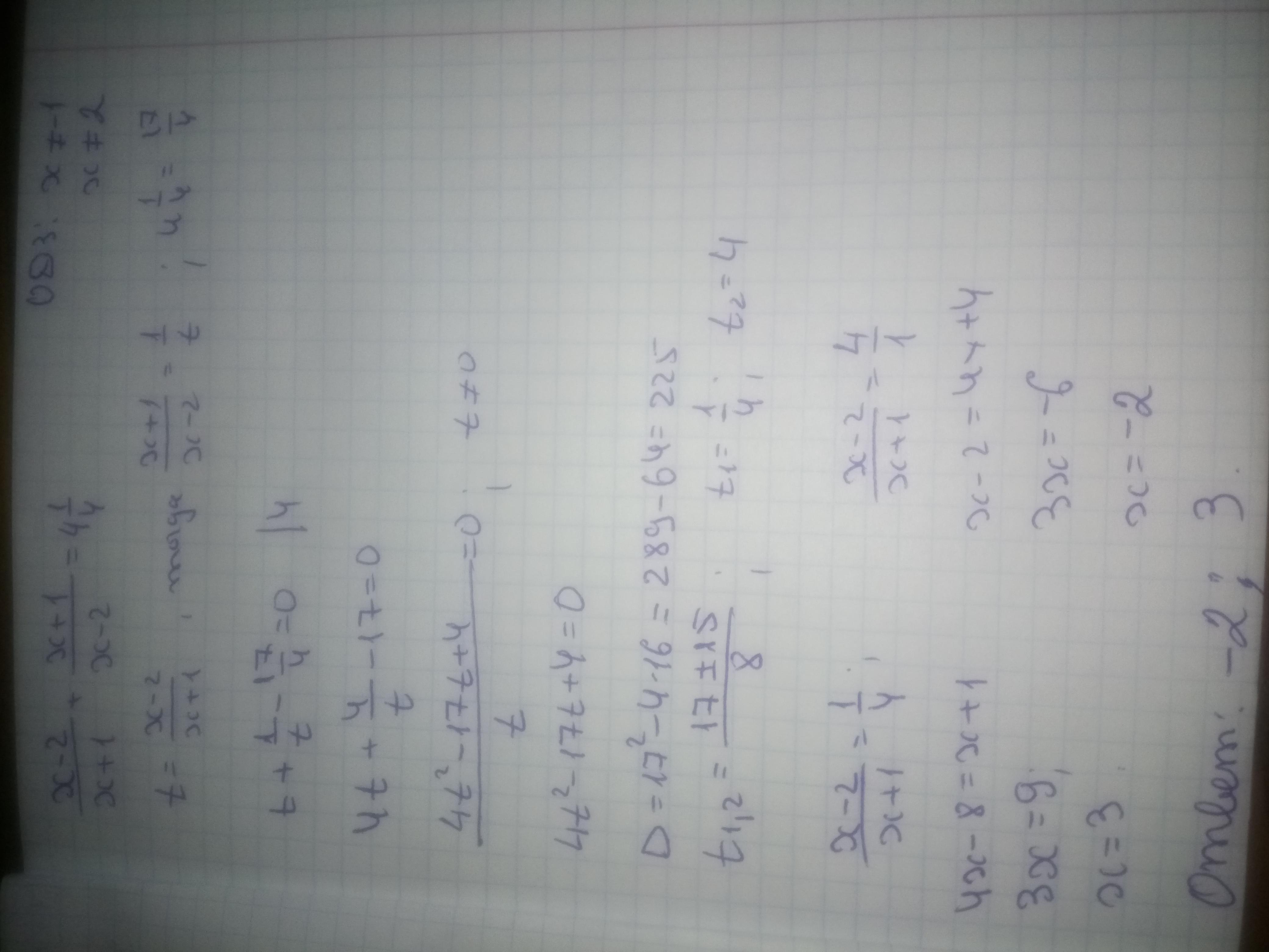 х=(2+у)/(1-у). Если у=4 х=-2, если у=1/4 х=3