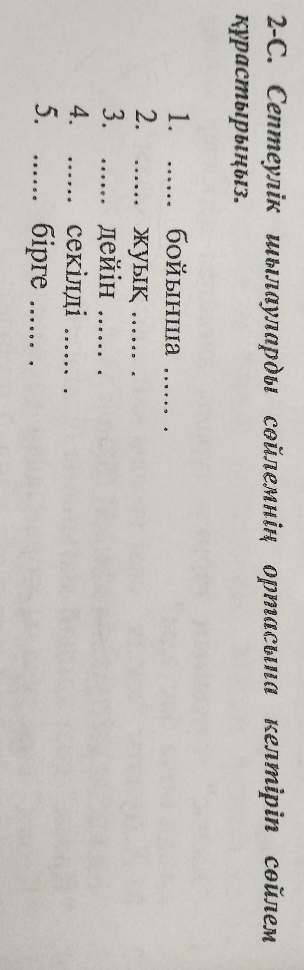 2-С. Септеулік шылауларды сөйлемнің ортасына келтіріп сөйлем құрастырыңыз. Помогите мне пожалуйста!Дам 15 баллов!!