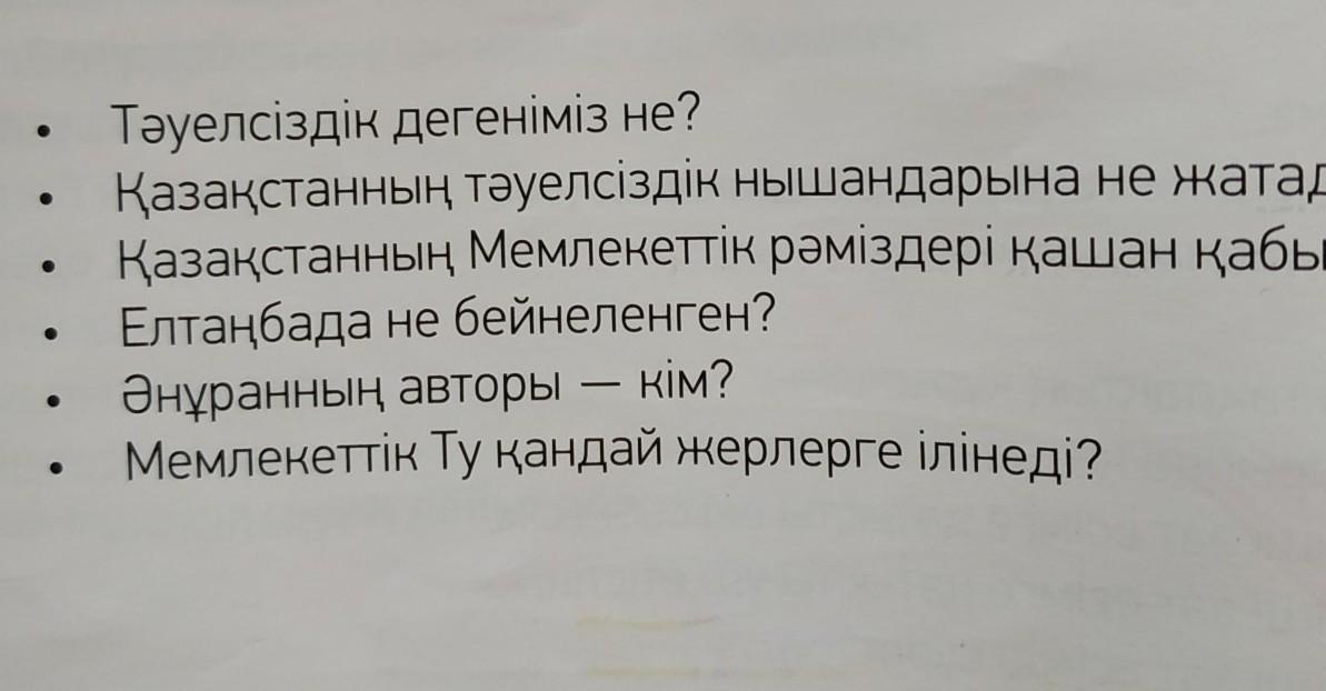 •Ешбір елге тəуелді болмай, өз бетімен еркін өмір сүру.