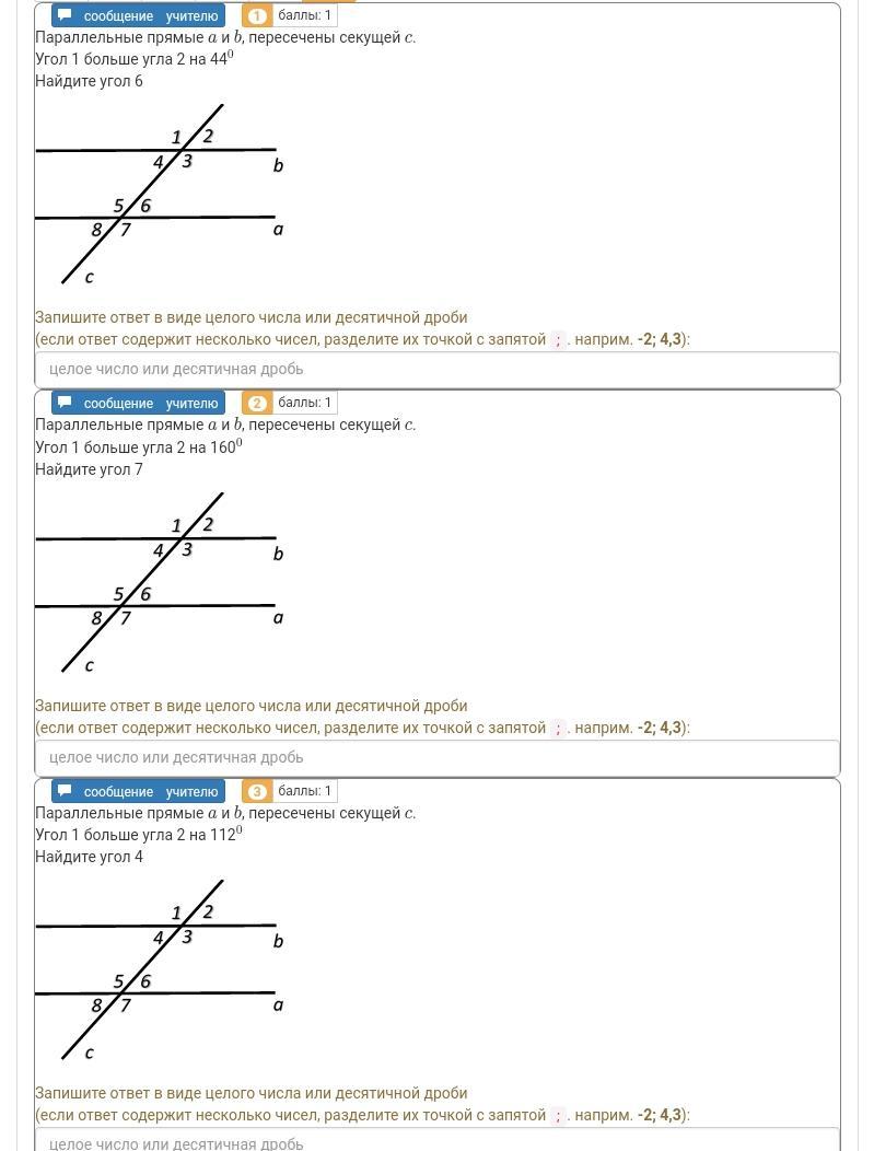 угол (6) 46градусов. Если угол 1 больше угла 2 на 44 градуса то нужно 90+44=134. угол 1 =134 градуса, сумму двух углов вычитаем от суммы угла 1. 180-134= 46. таким образом находим угол 2. угол 2 46 градусов. так как угол 2 и угол 6 идентичны угол 6 равен 46 градусов