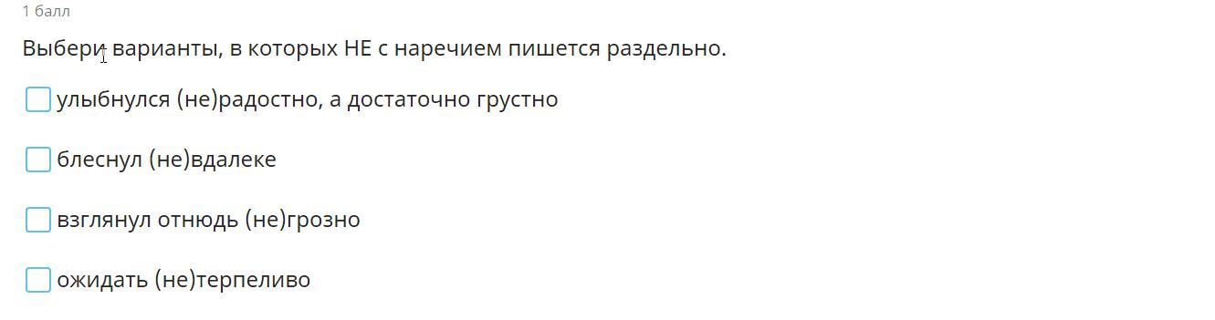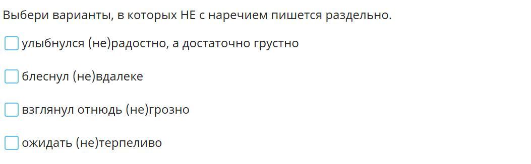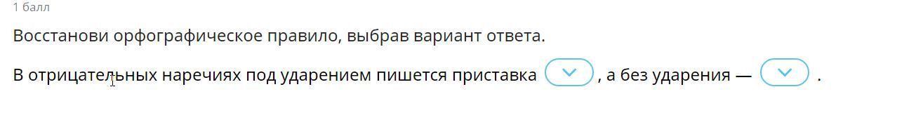1. В отрицательных наречиях под ударением пишется приставка не, а без ударения – ни.