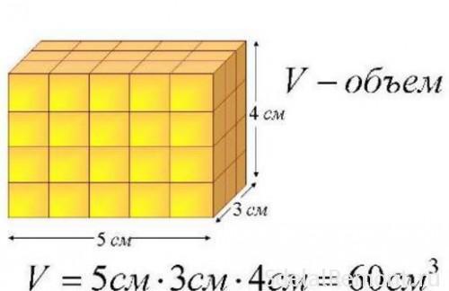 Чтобы найти объем прямоугольных фигур надо длину умножить на ширину умножить на высоту