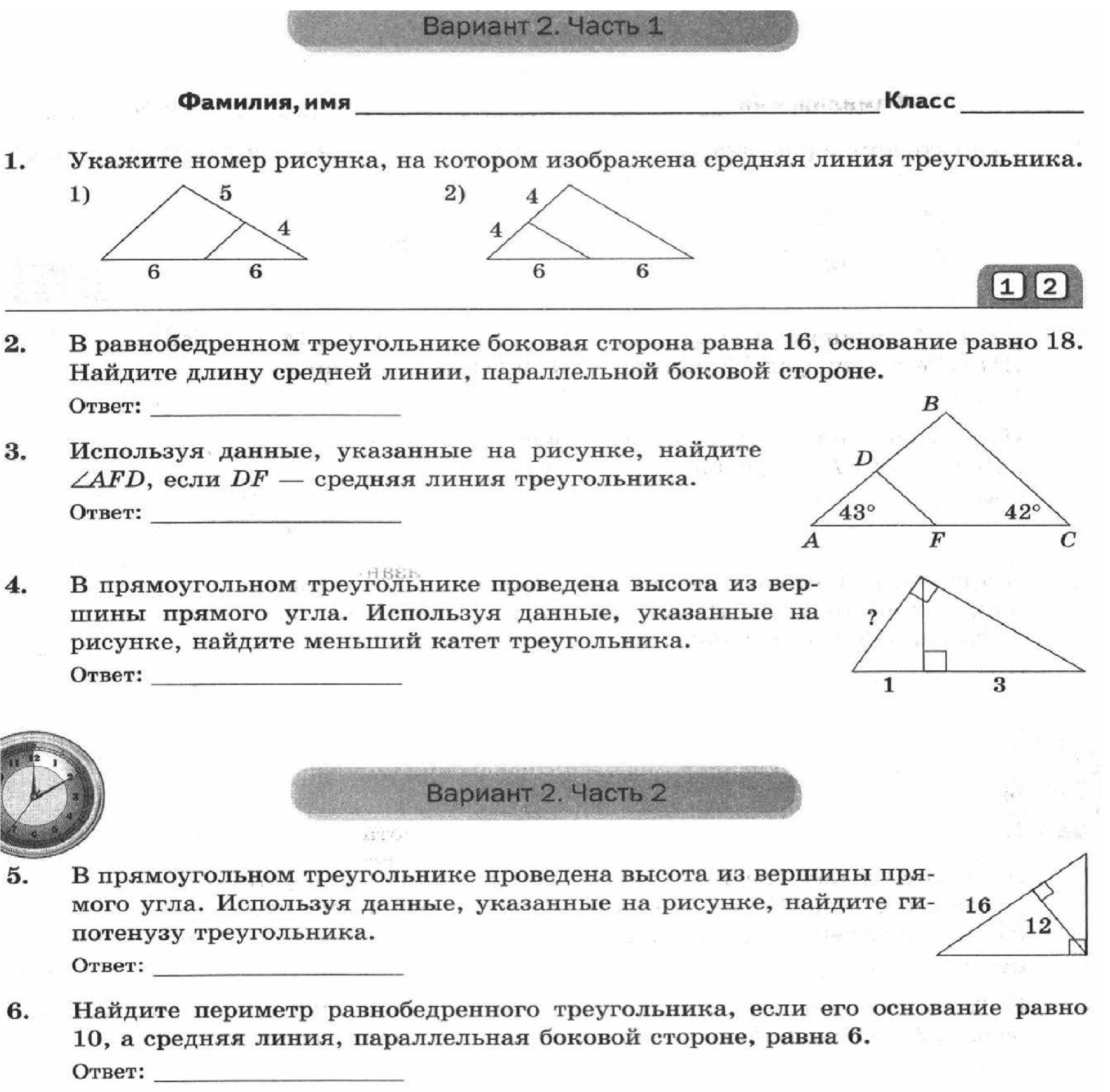 Вариант 2. Часть 1 1. 2) ; 2. 8 ; 3. ∠AFD =42° ; 4. 2