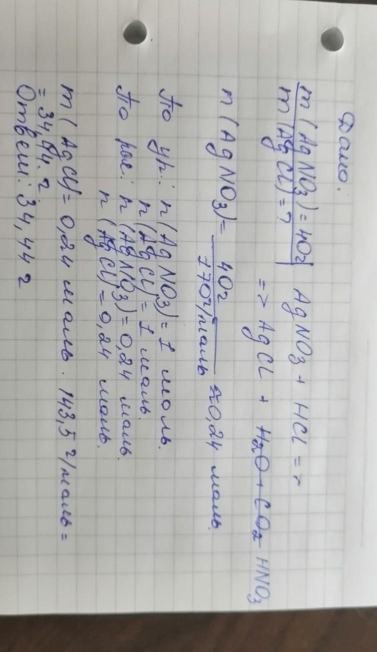 5. Какая масса хлорида серебра образуется при взаимодействии 40 г нитрата серебра с достаточным количеством соляной кислоты?