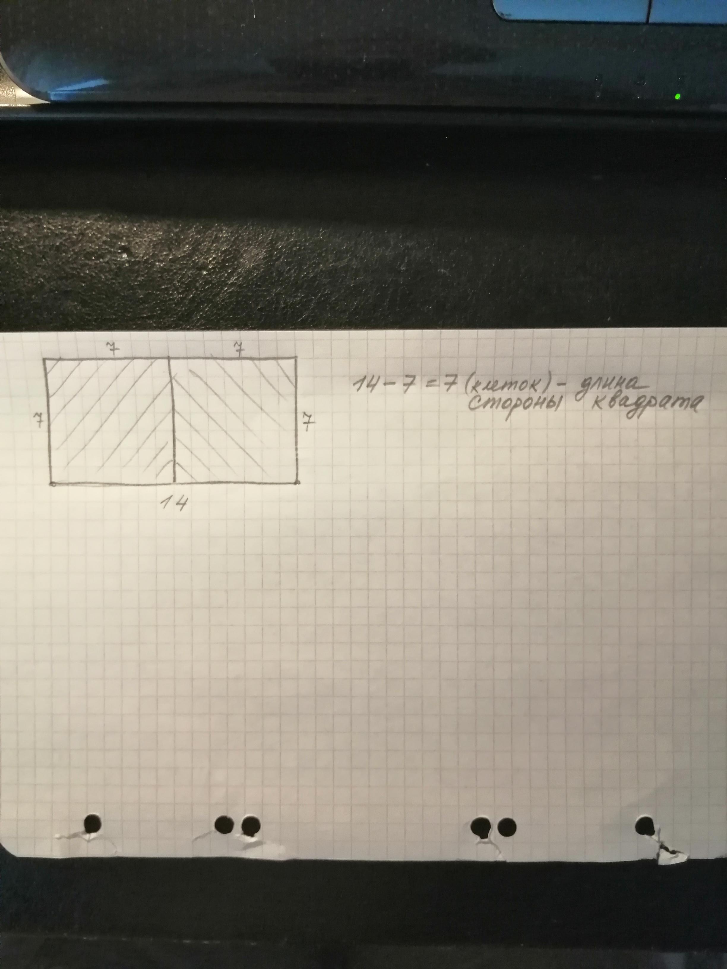 1) 14-7=7 (клеток) - длина второй стороны прямоугольника
