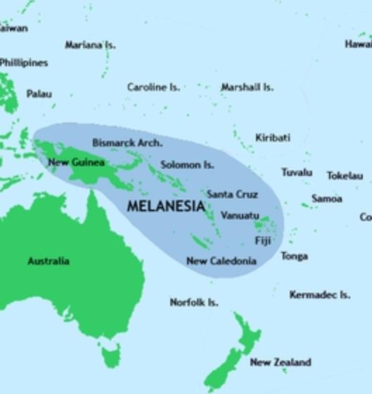 Меланезия( Новая Гвинея,Вануату,Фиджи, Соломоновых острова) ,любо из этих государств