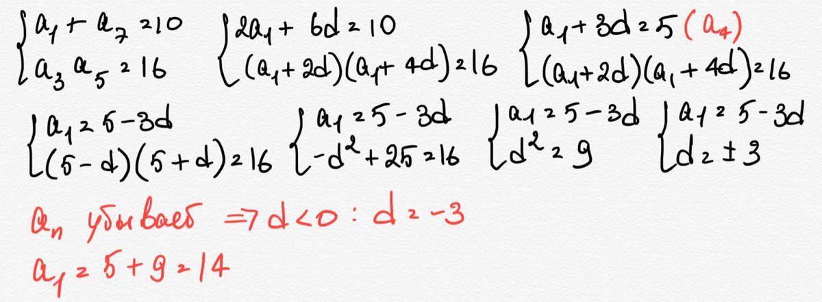 СРОЧНО. Помогите, пожалуйста, решить убывающую арифметическую прогрессию.