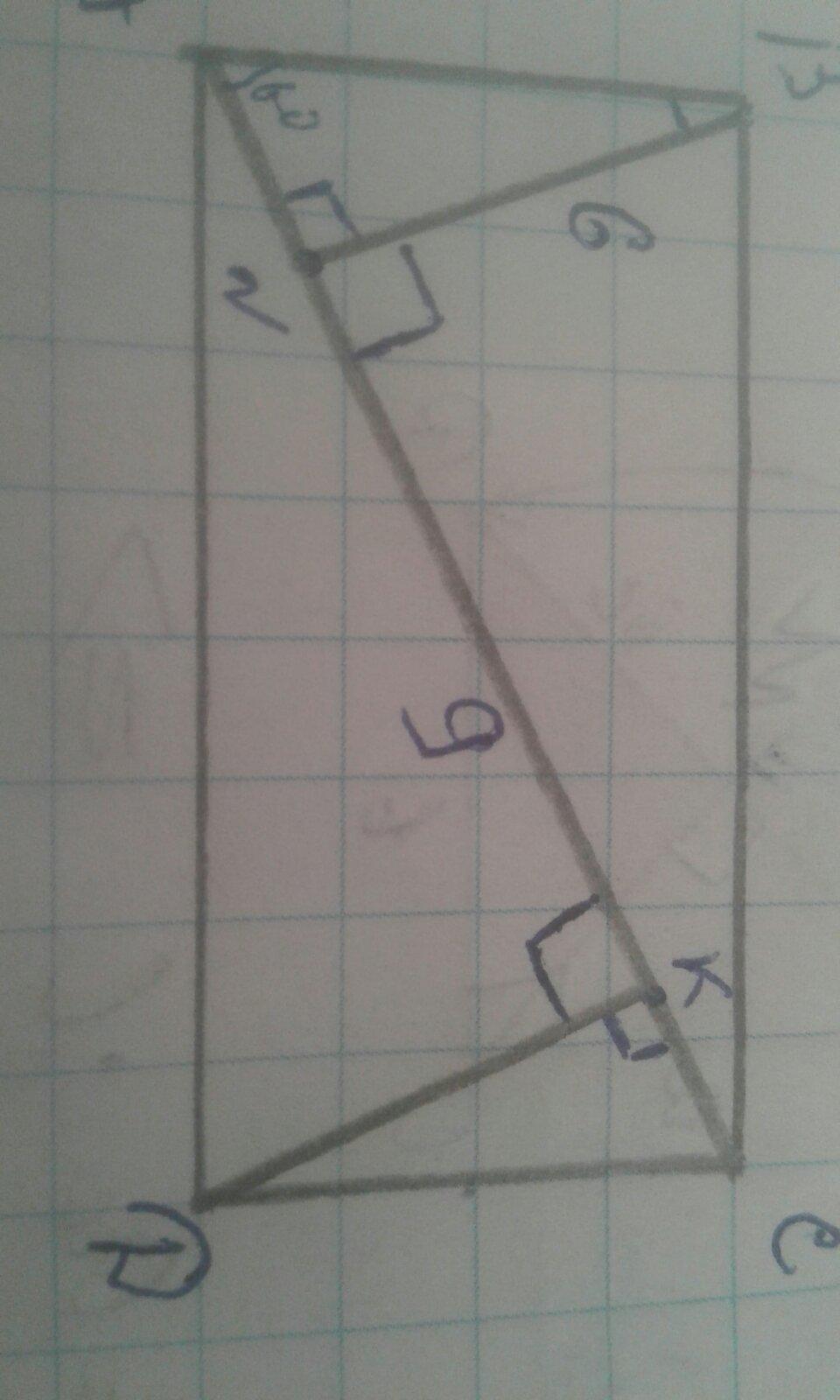 ΔABN=ΔCDK по катету и гипотенузе, AB=DC /противолежащие стороны прямоугольника равны/, KD=BN /как равные высоты в равных треугольниках АВС и АDC, на которые их разбивает диагональ АС/