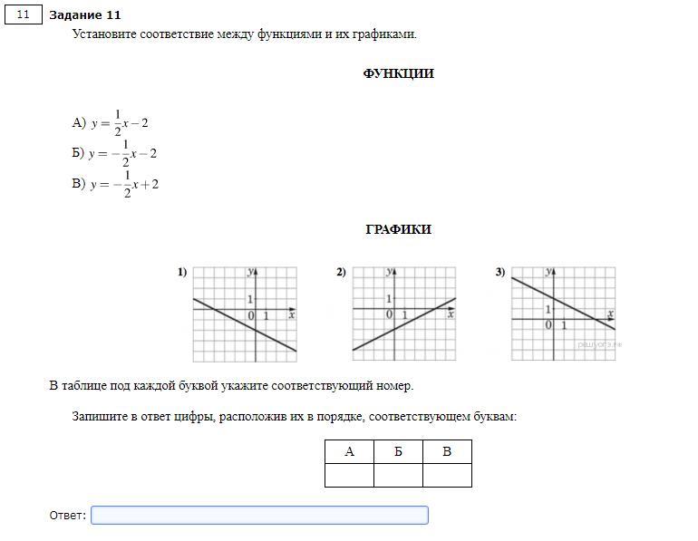 ПОМОГИТЕ РЕШИТЬ РЕШУ ОГЭ! Задание 11: установите соответствие между функциями и их графиками