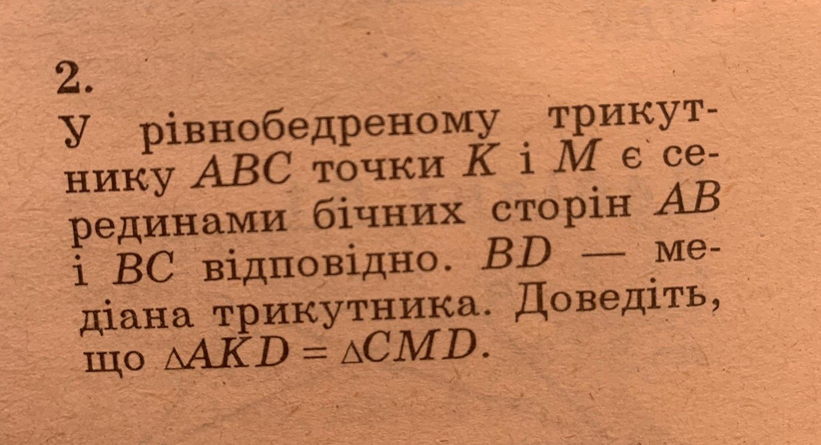 Отже, трикутники AKD і CMD рівні за двома сторонами і кутом між ними (І ОРТ), що і т.б.д.