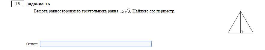 15|3 / Х = Sin 60 град ( т к в равностороннем треугольнике все углы по 60 град