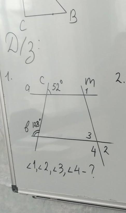 угол 4=180-52=128(смежныйс углом 2)