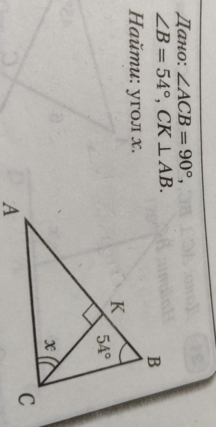 Т.к. весь угол C=90 отсюда следует, что x=90-36=54