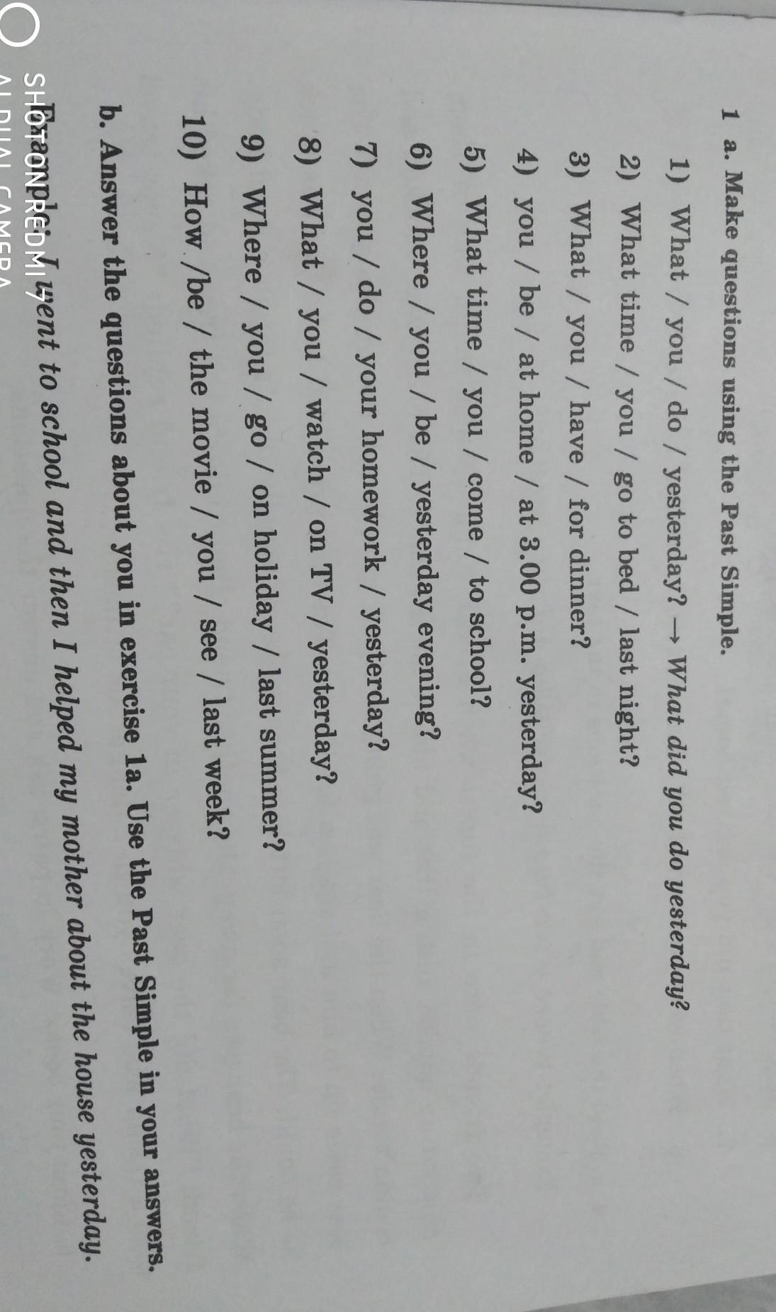 7) Did you do your homework yesterday? - I did my homework yesterday.