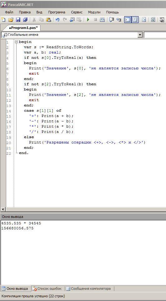 Print('Разрешены операции <+>, <->, <*> и </>')
