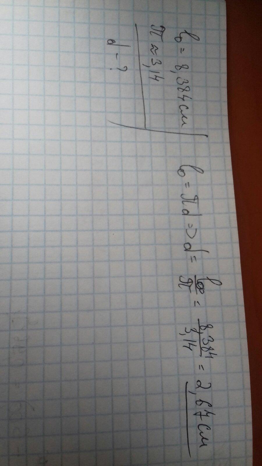 Длина окружности равна 8,384 см. Значение числа π≈3,14.