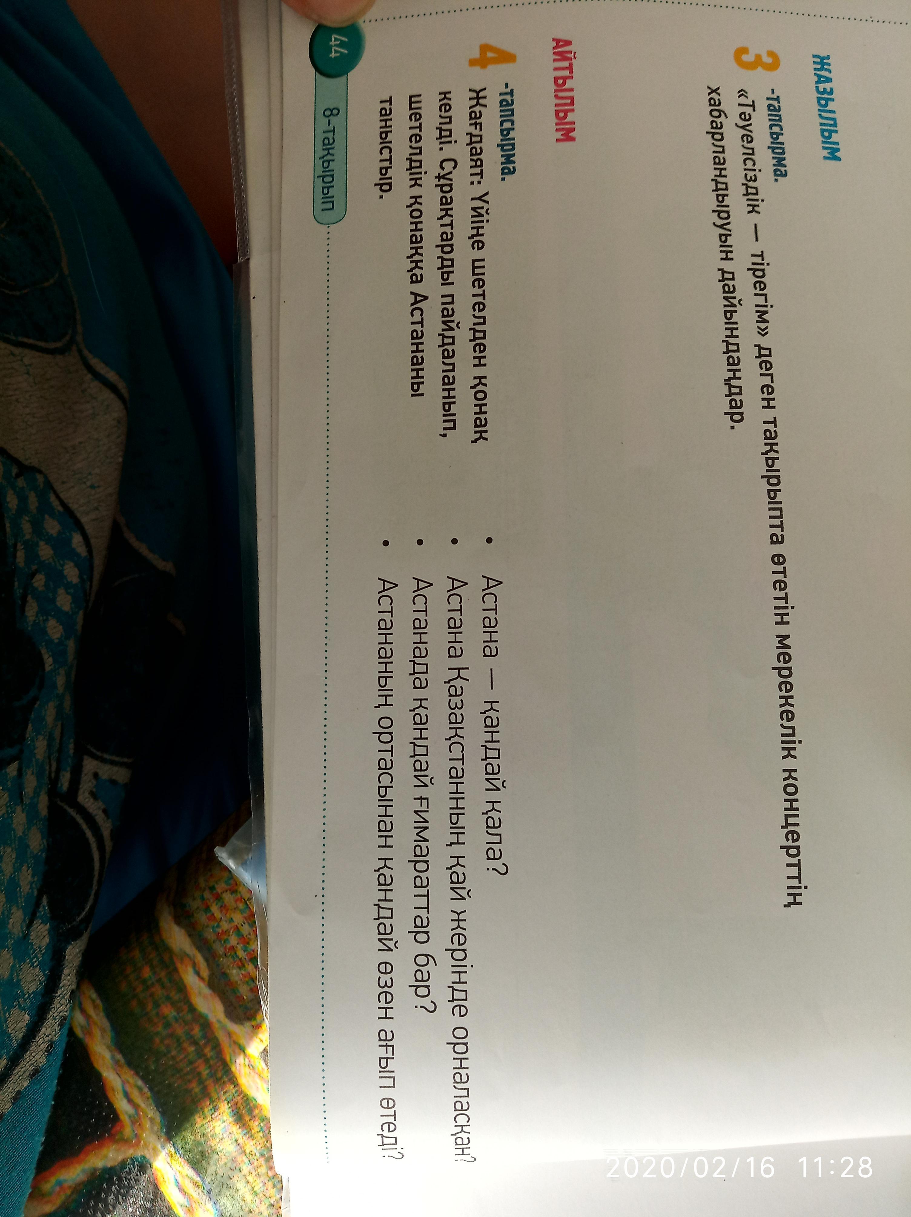 Ответ: Нұрсұлтан қаласы- еліміздің астанасы. Қала Орталық Қазақстанда орналасқан. Қаланы оң және сол жағалауға Есіл өзені бөліп жатыр. Демалыс күндері шағын кемелермен Есіл өзенінің үстінде серуендеп, қаланы тамашалауға мүмкіндік бар. Сонымен қатар, сол жағалауда орналасқан "Хан шатыр", "Бәйтерек" " Керуен" " Думан", "Азия парк", "ЕХРО-2017", "мега Силк Уей" тағы да басқа көрікті жерлерге барып қыдыруға болады.