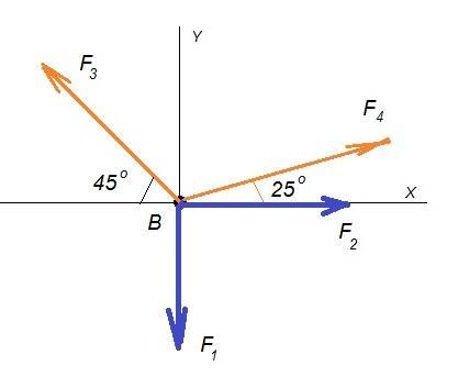 -F₁ + F₄·sin 25⁰ + F₃·sin 45⁰ = 0
