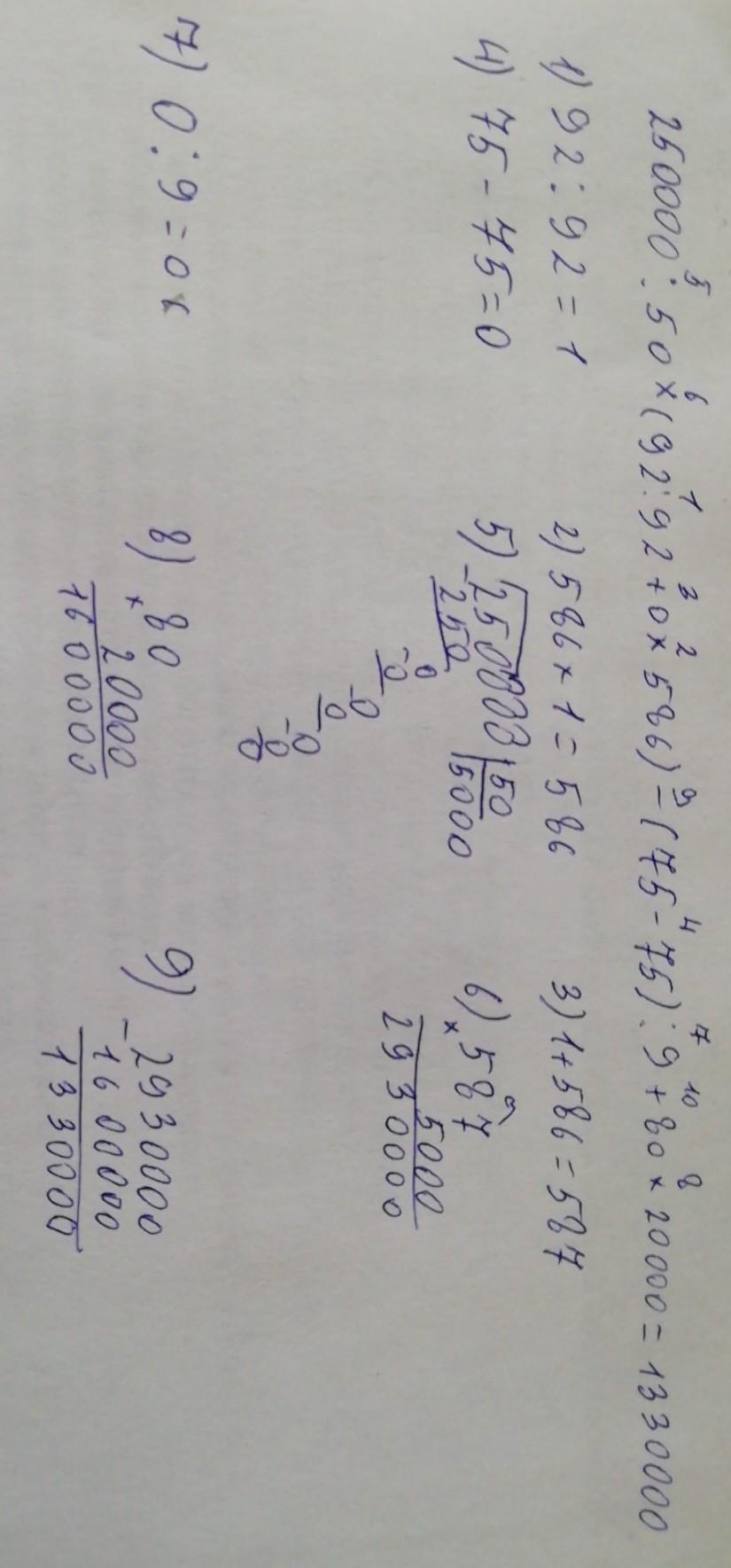 3)75 -75 =0 вторые скобки 4)250000:5 =5000