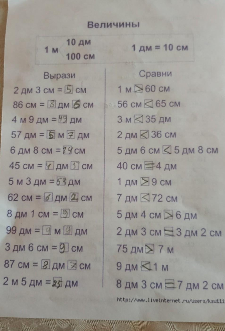 2 дм 3 см < 3 дм 2 см