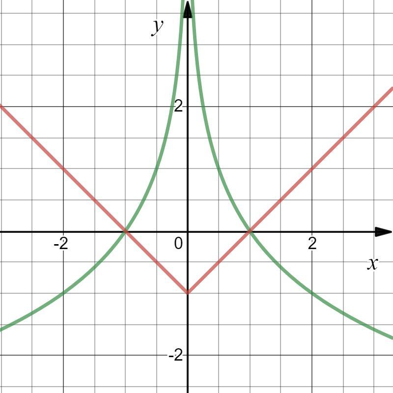Из графика видно, что логарифмическая функция не меньше модульной на промежутке