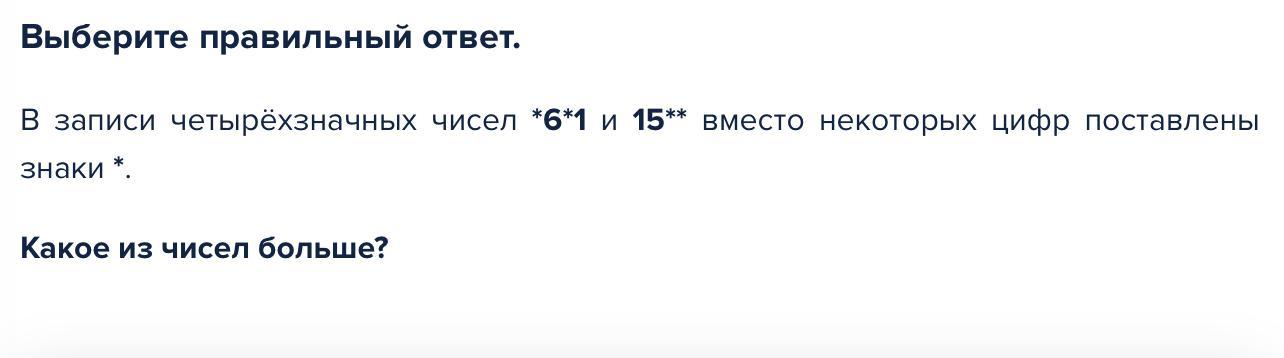 Если вместо * в первом числе поставить 1, то оно будет больше второго, так как в сотнях у второго числа - 5, а у первого - 6. Аналогично и с любыми другими цифрами.