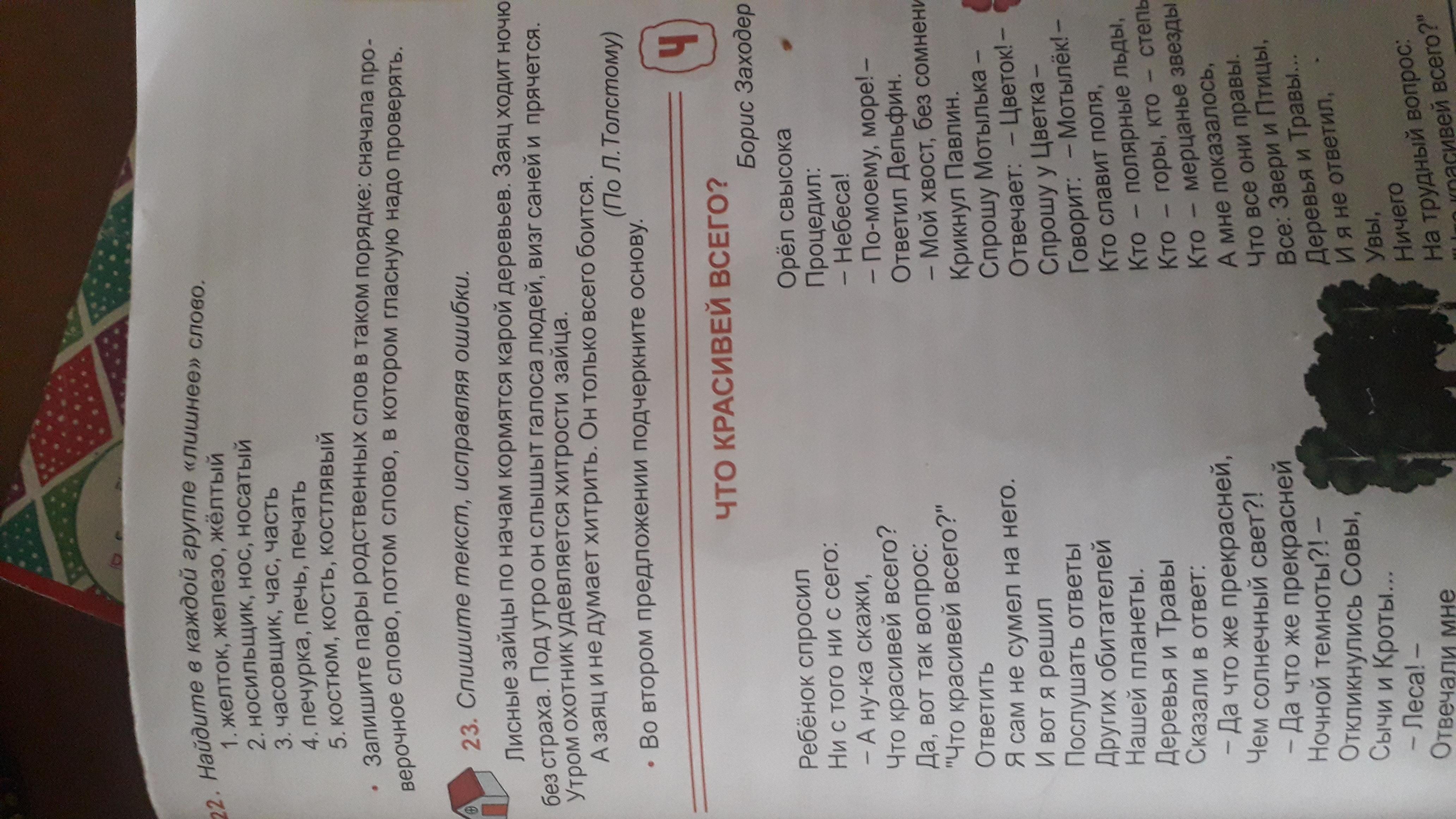 Лесные Зайцы по ночам кормятся корой деревьев . Заяц ходит ночью без страха. Под утро он слышит голоса людей, визг саней и прячется. Утром охотник удивляется хитрости зайца.