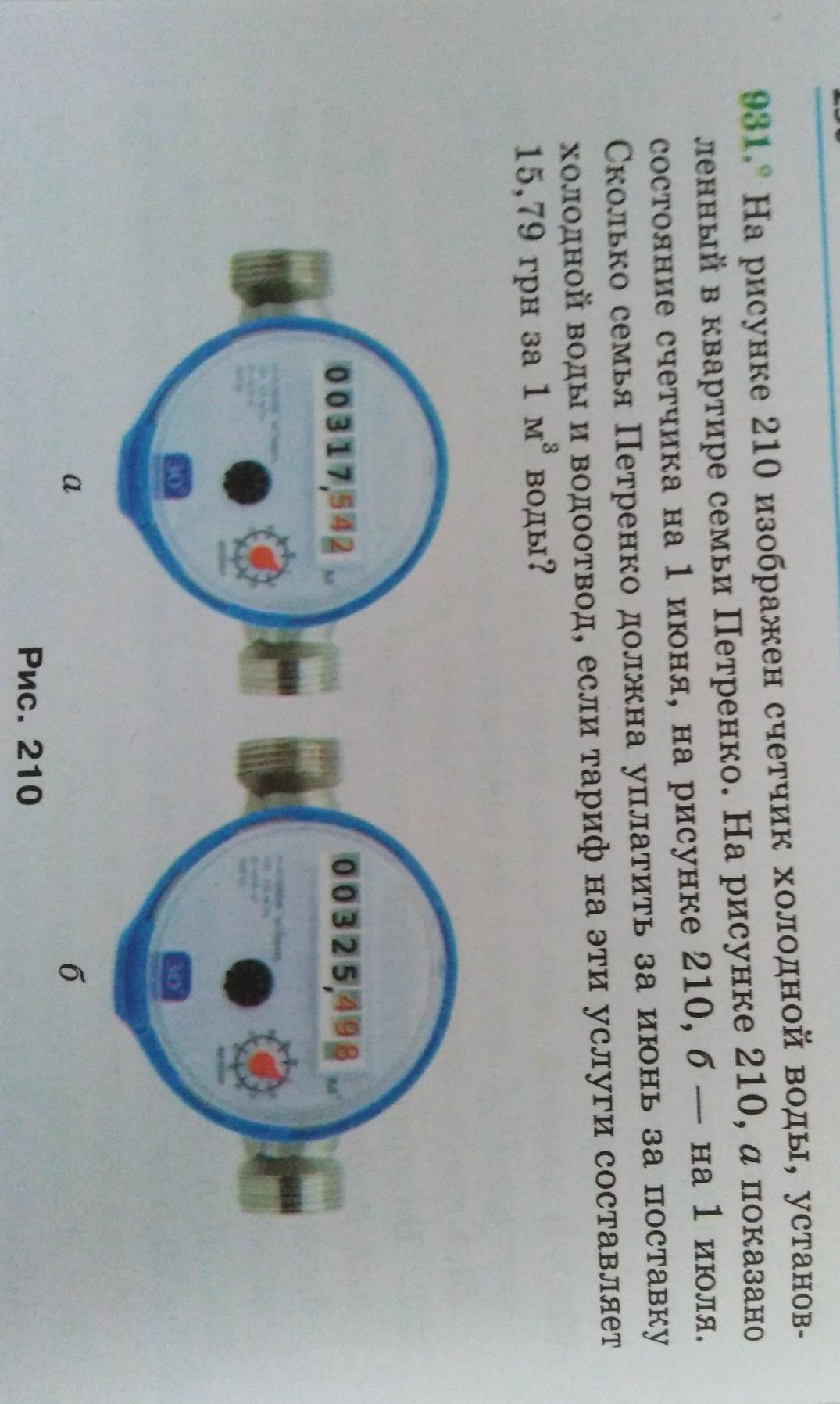 Семья израсходовала 7,956 м3 волы за месяц. Это число умножим на цену одного кубометра воды(15,79 грн). Получим 125,635 грн