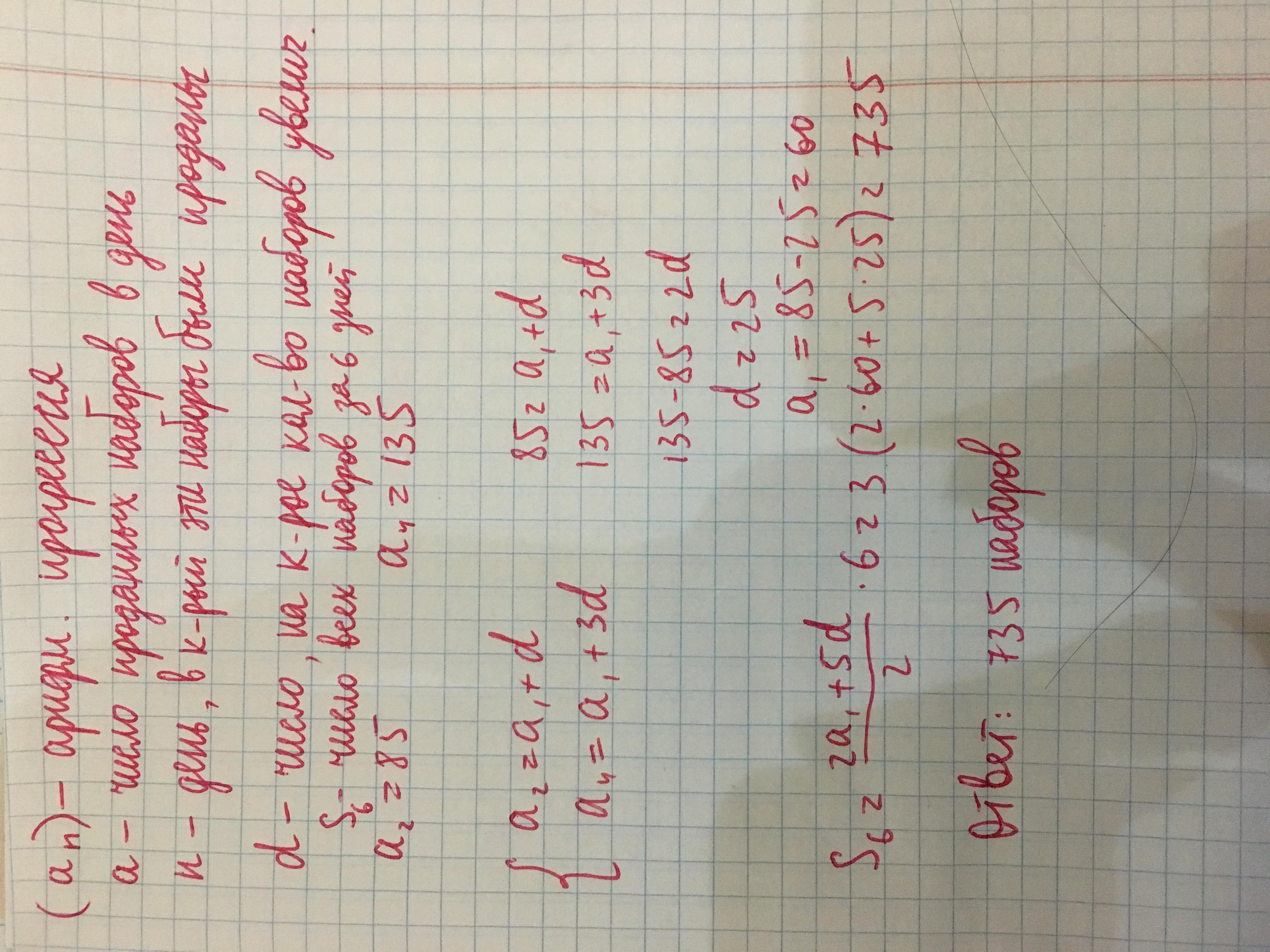 в первые 6 дней марта количество продаваемых в парфюмерном магазине подарочных наборов увеличивалось на одно и то же число ежедневно. найдите количество наборов проданных за 6 дней, если во второй день продали 85 наборов, а в четвёртый день - 135.