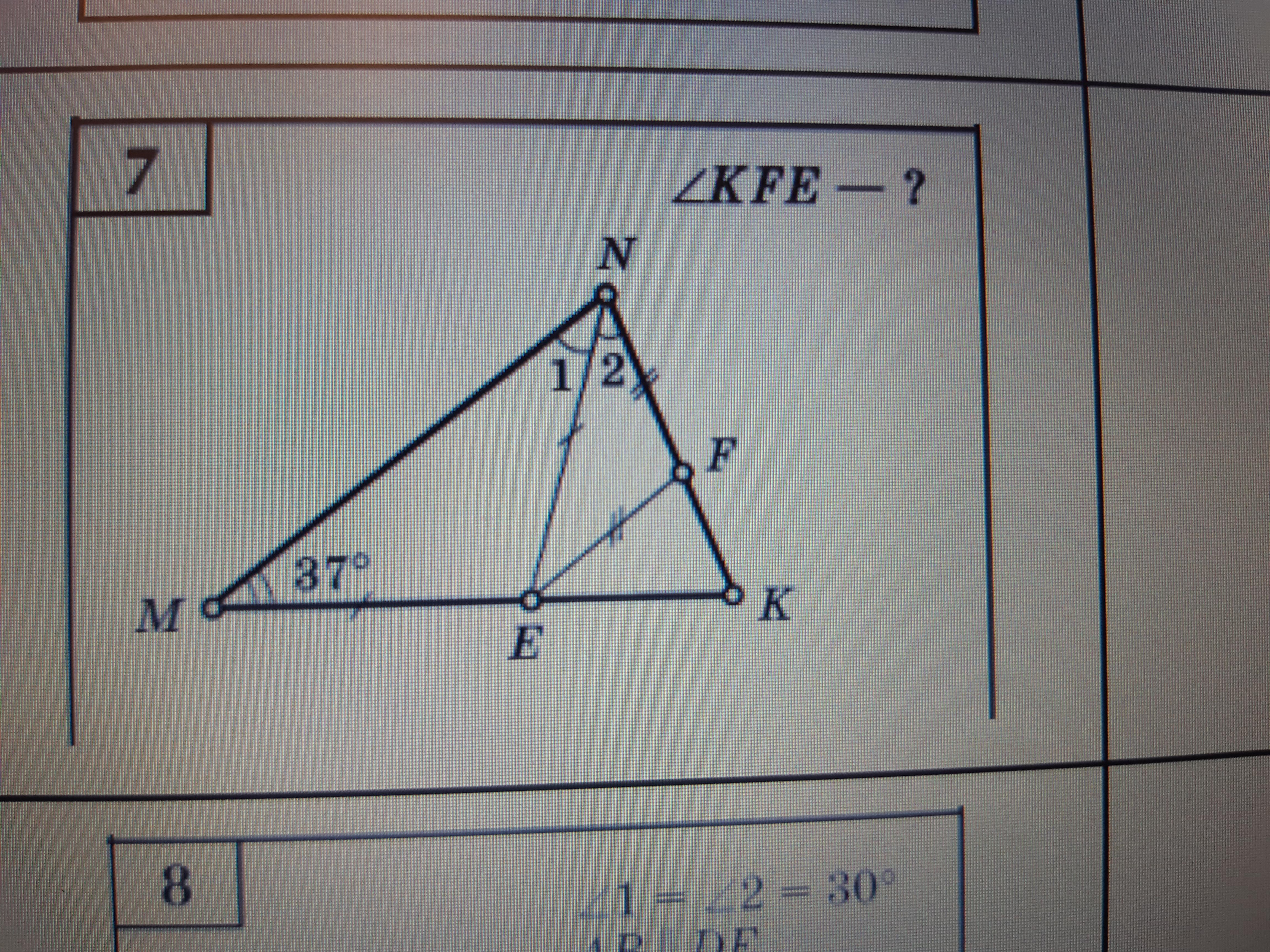 4) у. КЕF= y. MEK( он развернутый, его град.мера 180°)- у. NEF- y.MEN