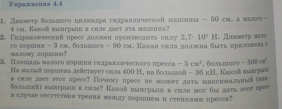 А большой должен создавать силу F = p × S бол = 80 × 10^4 × 500 × 10^-4 = 40 кНа он создаёт 36 кН КПД = 36/40 × 100% = 90% т.е. Потери 4 кН из-за трения между поршнем и стенками пресса выйгрыш в силе мог составить 40 кН/400Н = 100 раз.