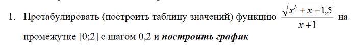 В ячейке B1 пишем формулу: "=КОРЕНЬ(A1^2+A1+1.5)/(A1+1)". Протягиваем вниз, сколько получилось ячеек в столбце A.