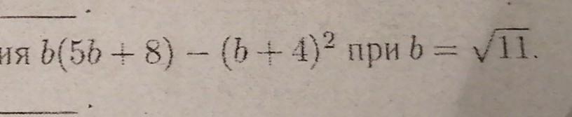 b(5b+8)-(b+4)²=5b²+8b-(b²+8b+16)=5b²+8b-b²-8b-16=4b²-16=4•(√11)²-16=4•11-16=44-16=28